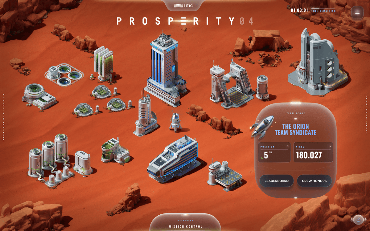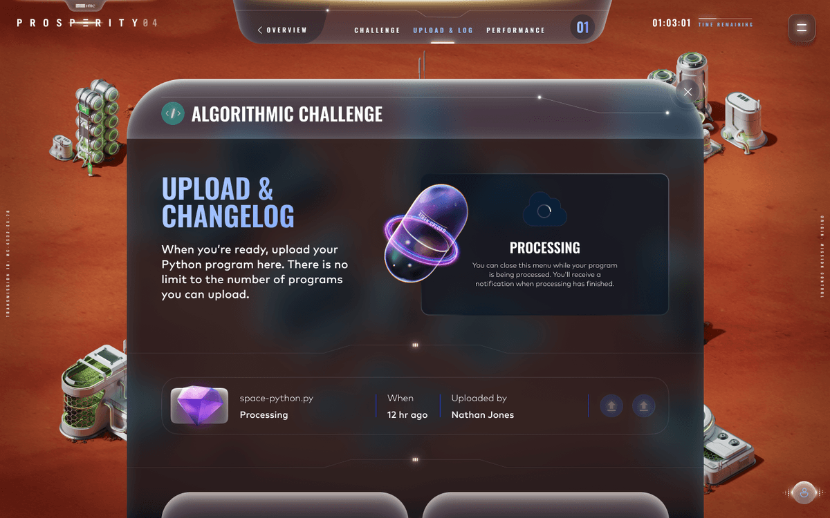 Prosperity is a five-round trading challenge in which students from around the world combine algorithmic and manual trading strategies to maximize profit, grow their trading outpost, and compete to claim the top spot on the leaderboard.